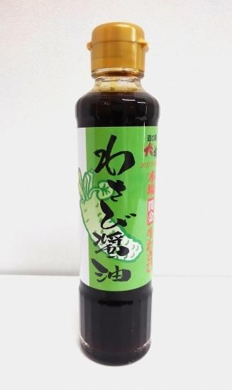 ○原材料名:しょうゆ(小麦・大豆を含む)(国内製造)、生揚、葉わさび、アミノ酸液、醸造酢(りんごを含む)、糖類(砂糖、果糖ぶどう糖液糖)、発酵調味液、かつおぶしだし、濃厚だし、醸造調味料、昆布エキス/酒精、香料、香辛料抽出物、カラメル色素、調味料(アミノ酸等)、増粘剤(キサンタン)