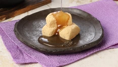 良質の餅米を使ったやわらかなきな粉餅に、鳥取名産の二十世紀梨で作った特製の「梨みつ」をかけてお召し上がりください。